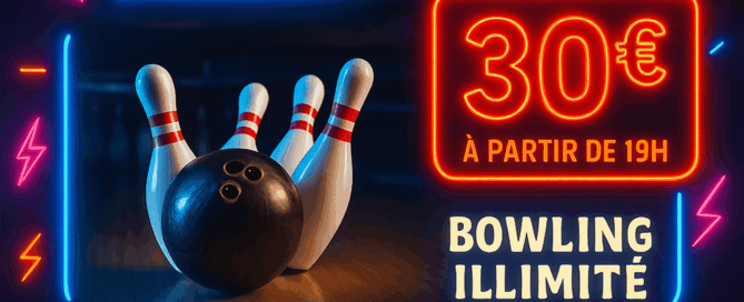 La 23ème Heure, c’est notre nouvelle offre nocturne dédiée aux amateurs de bowling ! Tous les vendredis et samedis à partir de 23h, profitez de 2 PARTIES DE BOWLING + 1 MOJITO ORIGINAL OU 1 VIRGIN MOJITO pour seulement 23 €. Une occasion parfaite de prolonger la soirée, de défier vos amis et de vivre l’ambiance unique du bowling de nuit. 🎳🌙